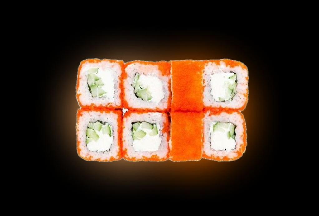 Филадельфия лайт с огурцом, Веган ролл, Калифорния, Вулкан с крабом, Осака, Маки огурец, Маки лосось