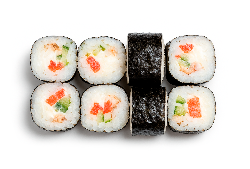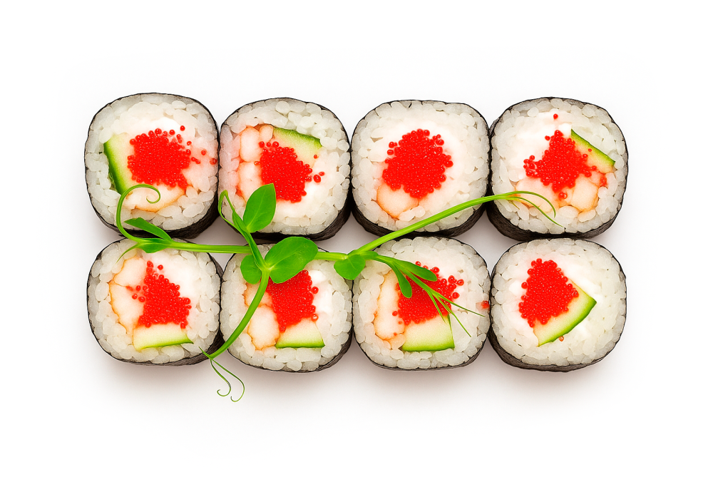 Нори, рис, сыр творожный, тигровая креветка, огурец, масаго