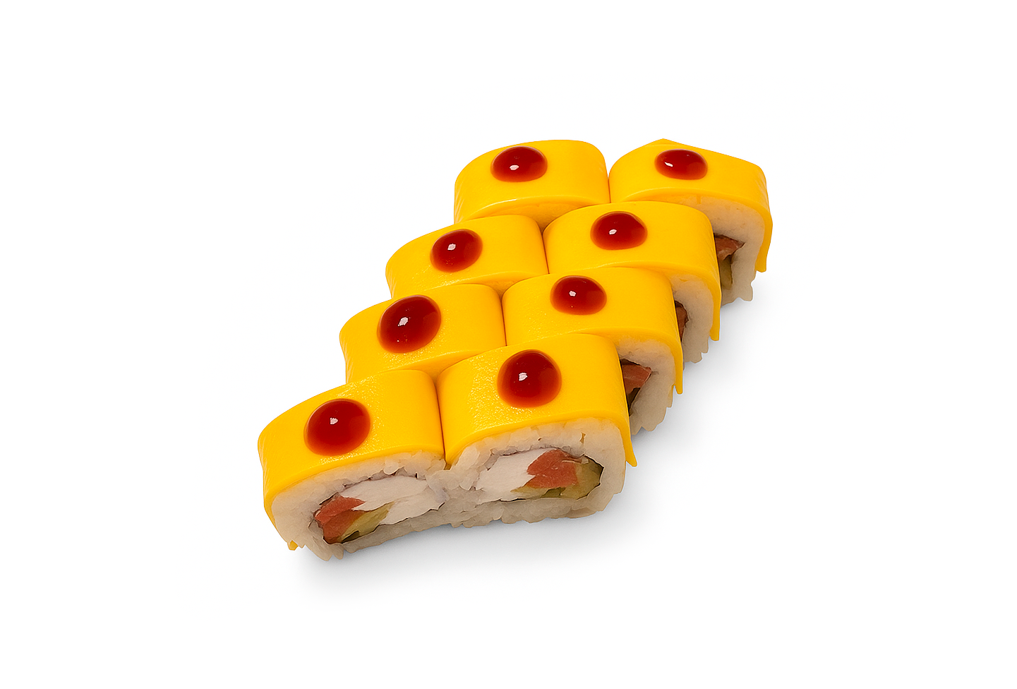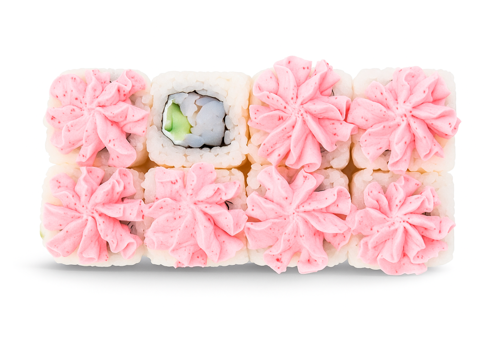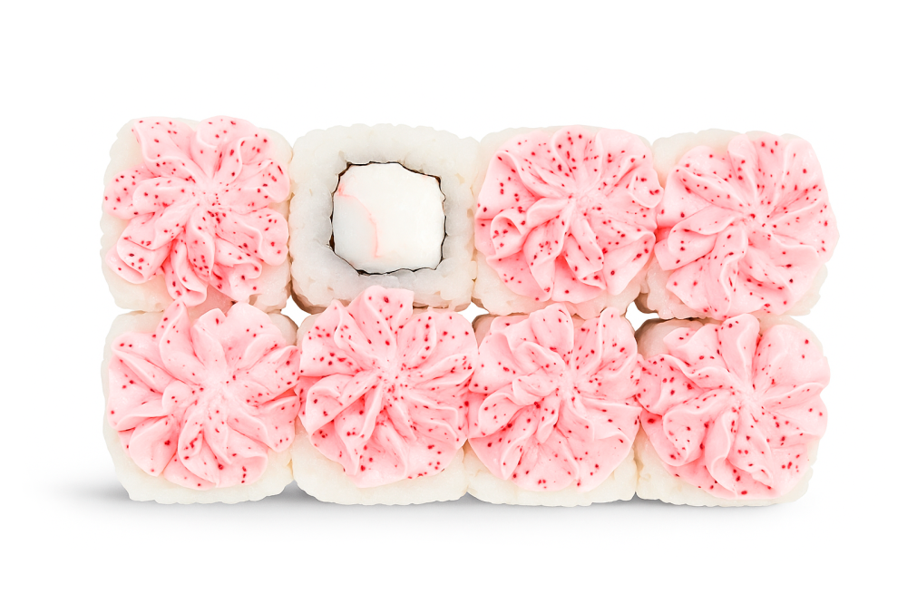 Нори, рис, сыр творожный, тигровая креветка, снежный краб, розовый соус